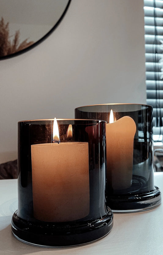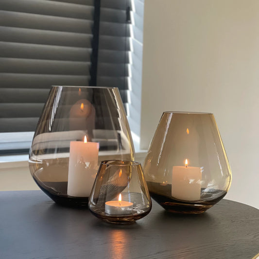 Theelichthouder glans smoke L